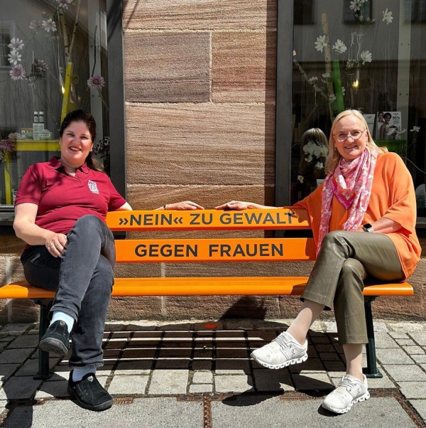 Sie erinnern öffentlich und dauerhaft an das Thema Gewalt gegen Frauen. Jede Bank ist mit einem QR-Code zu Hilfsangeboten versehen.Die Farbe Orange steht weltweilt für eine Zukunft ohne Gewalt.